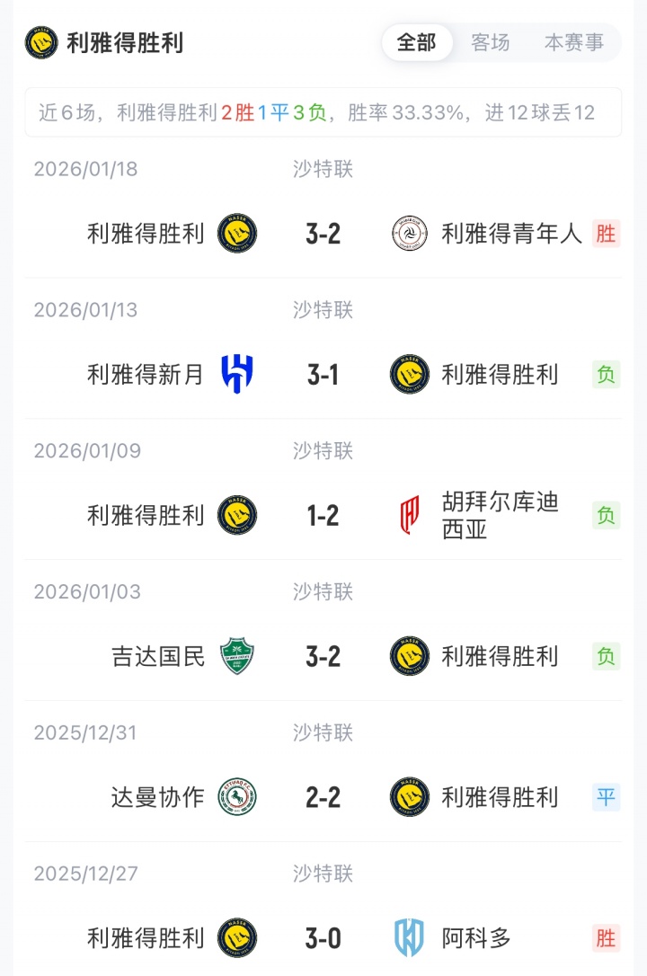 1月22日讯 沙特联第17轮,利雅得胜利客战达马克,赛前双方首发公布。