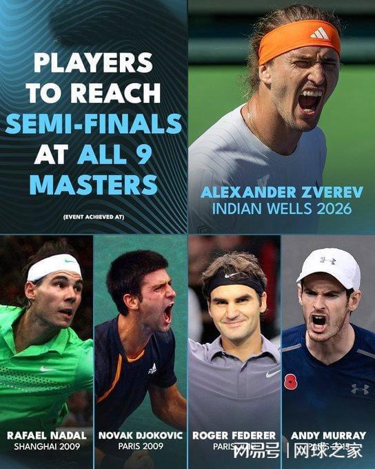 而辛纳的对手则是德国人小兹维列夫,后者同样发挥出色,以6-2 6-3完胜法国小黑菲斯,职业生涯首次在本站跻身四强,从而加入了九站大师赛“全四强”俱乐部,成为该俱乐部的第五位成员。此前,只有费纳德穆“四巨头”实现过这一壮举。